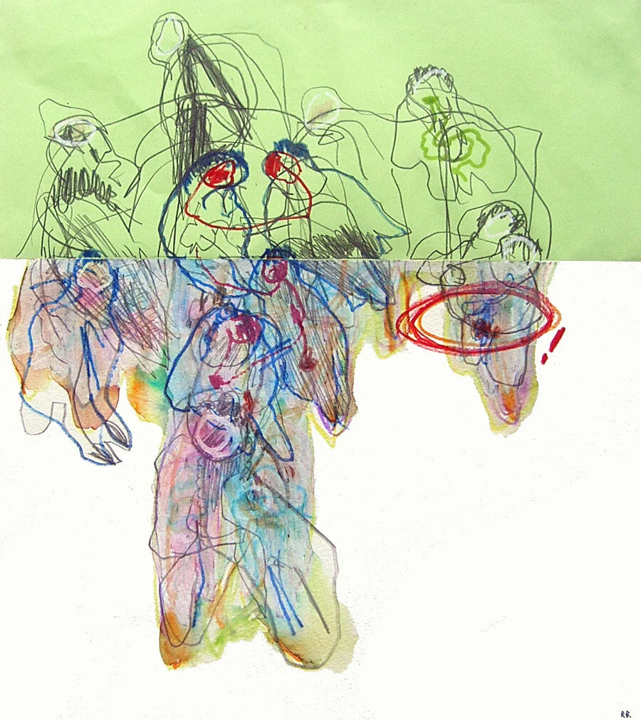 Feutre aquarellé, graphite et collage sur papier / 31 X 23 cm