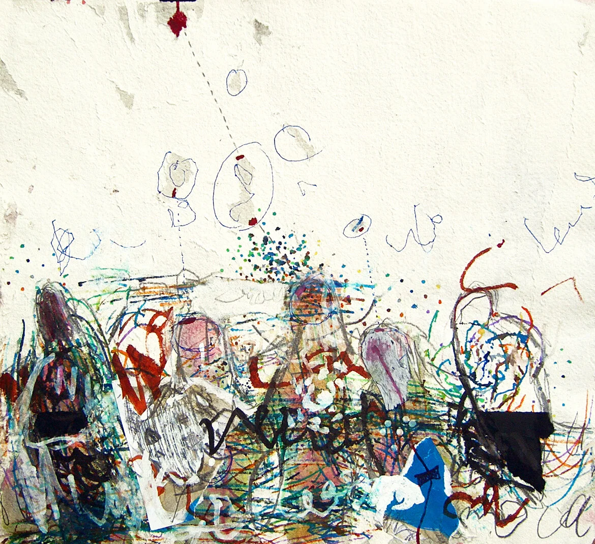 Encre, craie, graphite et collage sur toile / 162 X 130 cm